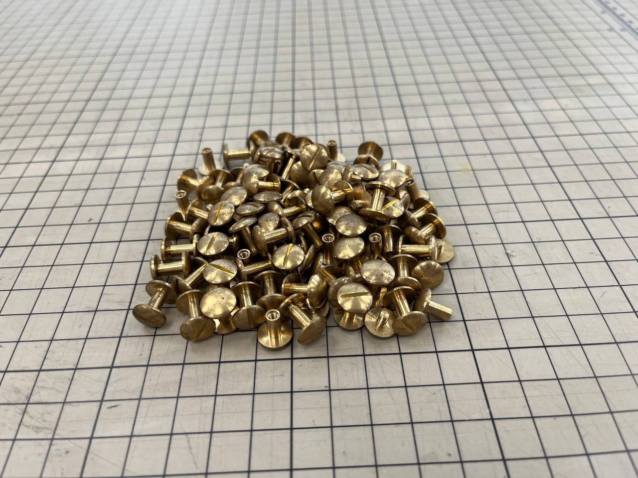 Ременные винты из меди продаются со скидкой. На поверхности из-за окисления имеются небольшие точки и помутнение. Высота ножки: 8 мм Диаметр шляпки: 10 мм Цвет: латунь