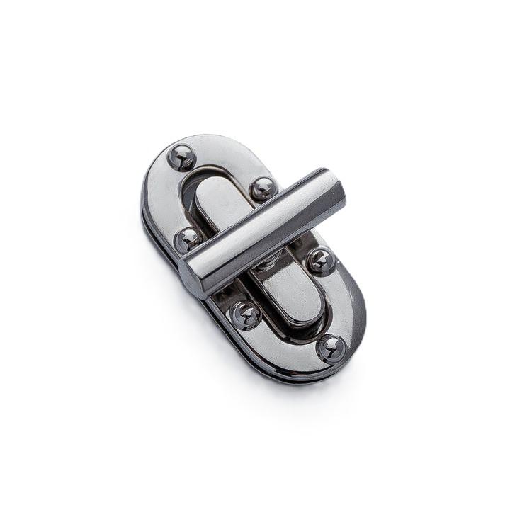 Замок-вертушка для сумок и рюкзаков Длина: 55 мм Ширина: 26 мм Материал: ЦАМ Вес: 62 грамм Цвет: никель